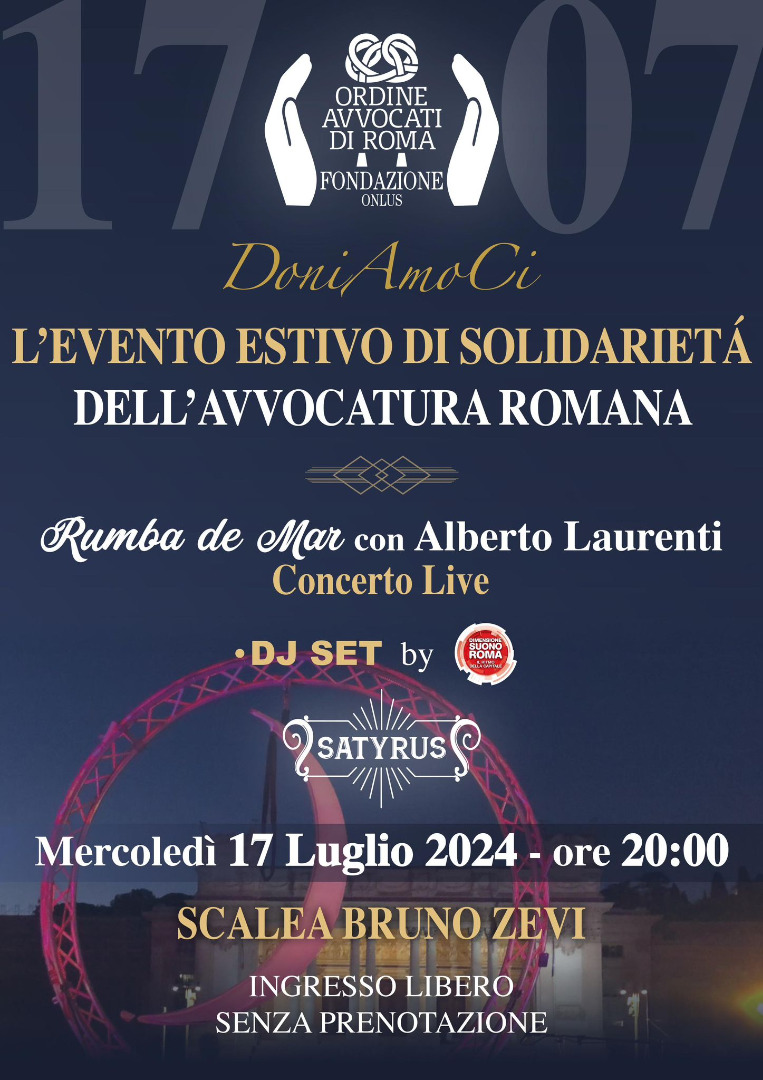Dopo il successo dello scorso anno con oltre duemila persone, si torna nuovamente al Satyrus per un’altra edizione del DoniAmoCi: l’evento estivo di Solidarietà dell’Avvocatura Romana organizzato dalla Fondazione Ordine Avvocati di Roma Onlus.
